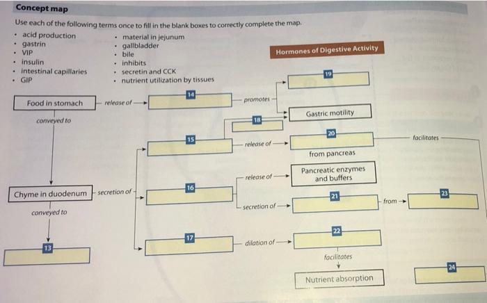 Solved Concept map Use each of the following terms once to | Chegg.com