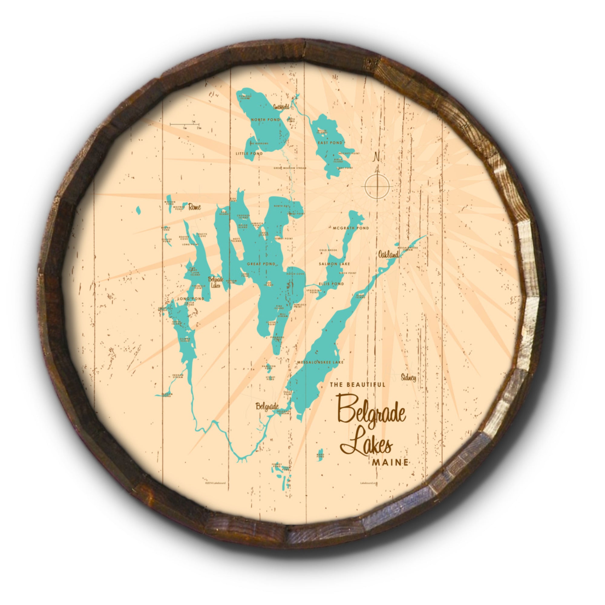 Belgrade Lakes Maine, Rustic Barrel End Map Art – Lakebound®