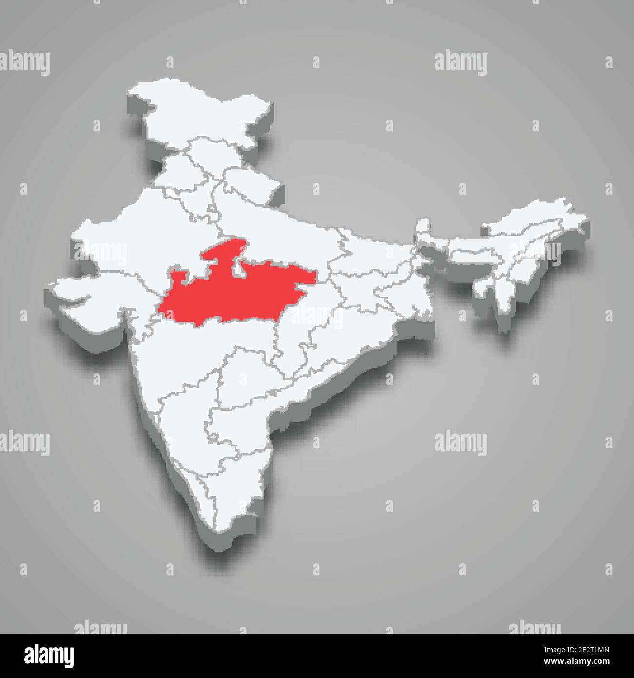 Madhya Pradesh state location within India 3d isometric map Stock