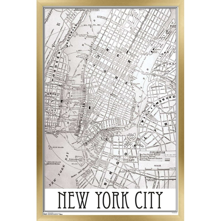 New York Map Wall Poster, 14.725″ x 22.375″, Framed Walmart.com