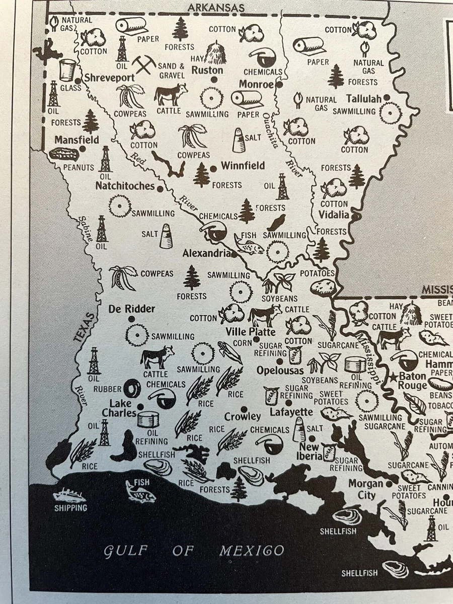 Vtg 1954 Louisiana Resources Products Economic Illustrated Map