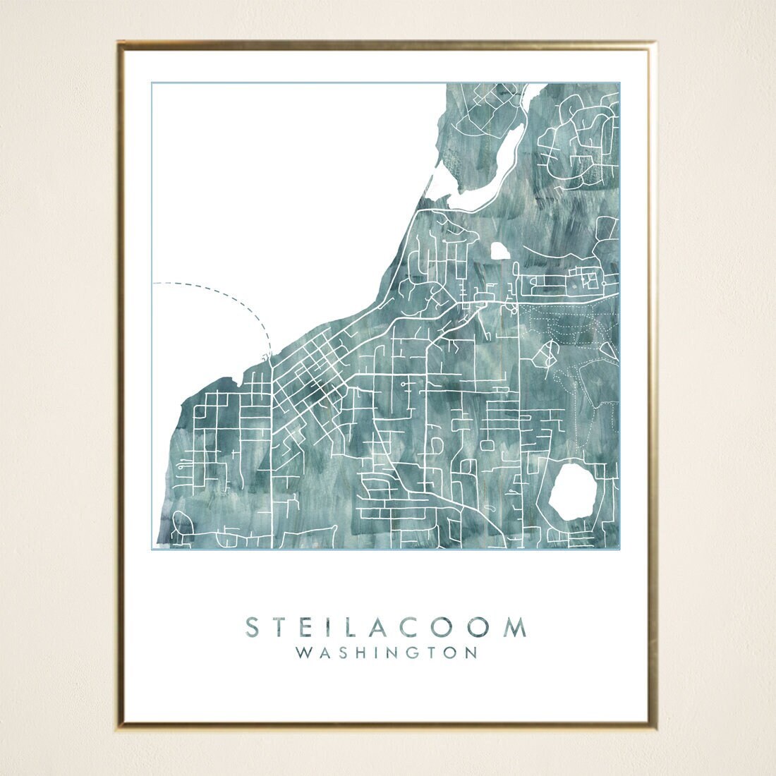 STEILACOOM Map Washington Watercolor Wash Map Print City Block