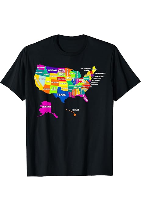 Amazon.com: United States Map All The States Colorful USA T Shirt