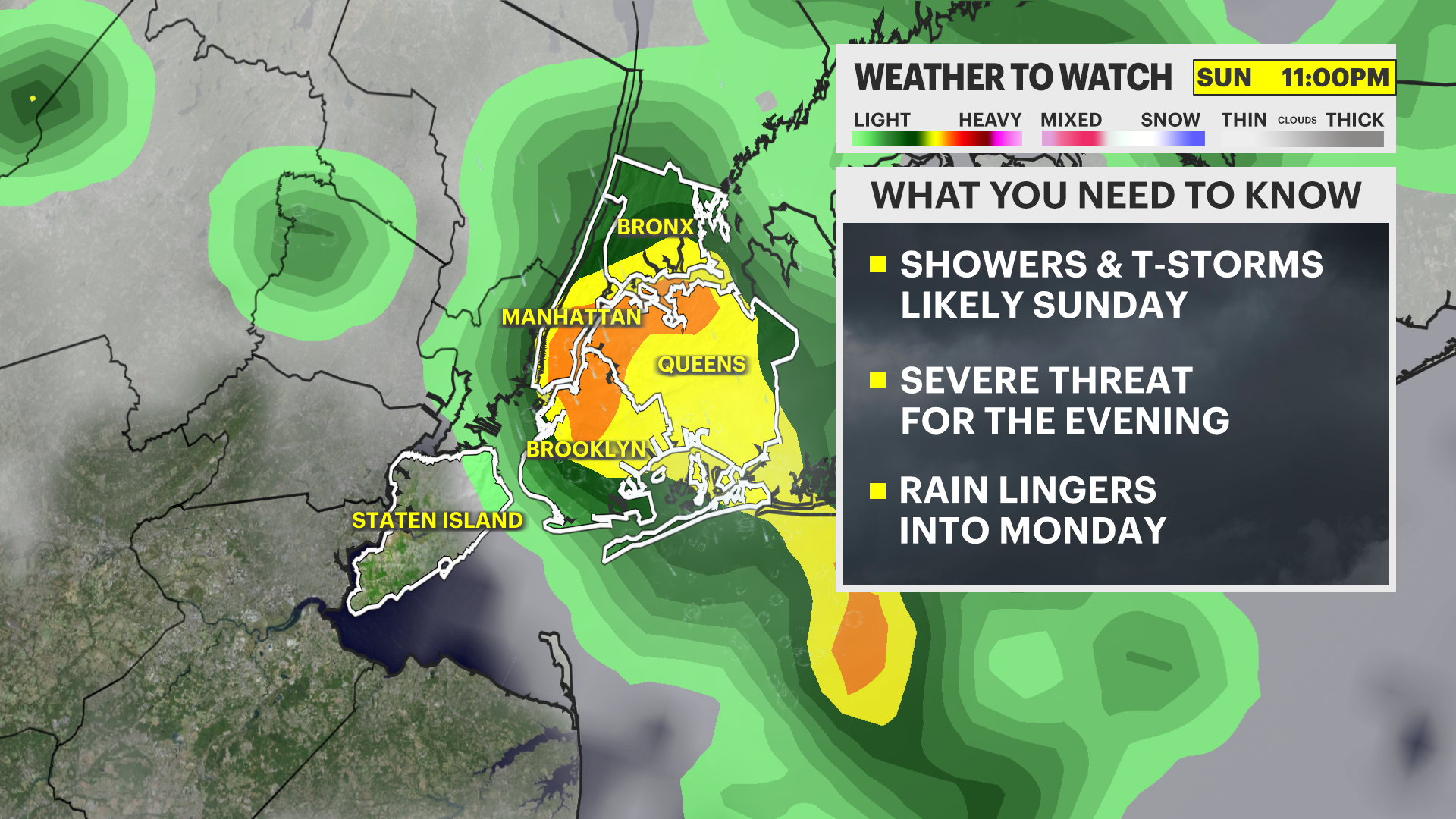 WEATHER TO WATCH: Showers and storms for Sunday in New York City